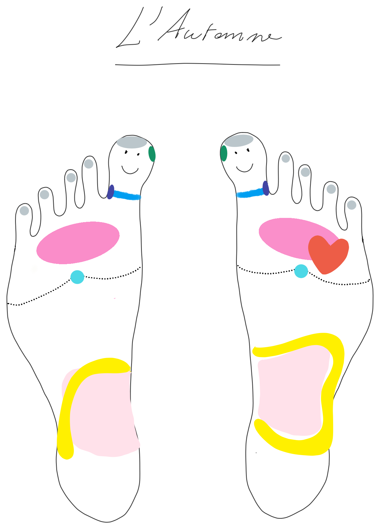 La réflexologie plantaire est un outil simple pour soutenir cette énergie. En quelques gestes, on peut apaiser nos poumons, stimuler notre gros intestin, et accompagner notre corps dans ce passage.
